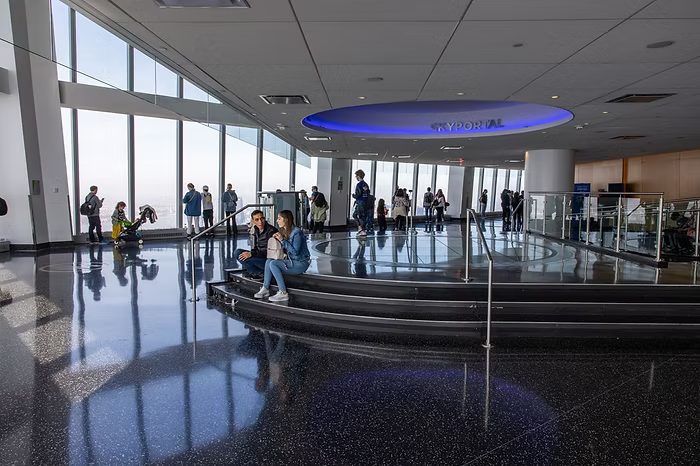 - O elevador SkyPod leva os visitantes até o 102º andar com uma projeção envolvente nas paredes e no teto